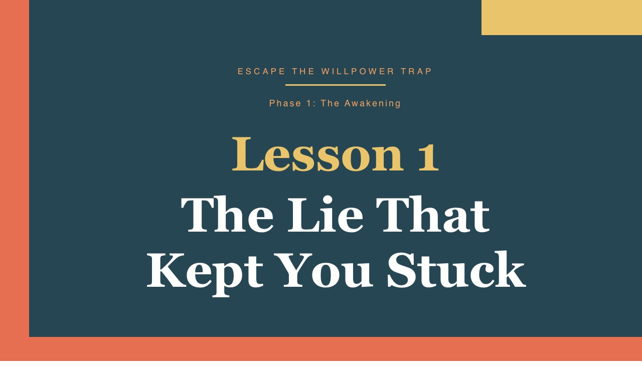 Escape The Willpower TrapLesson 1: The Lie That Kept You StuckEscape The Willpower Trap - Phase 1: The AwakeningRick TaylarMar 26, 2026∙ PaidShareContinue reading this post for free, courtesy of Rick Taylar.Claim my free postOr purchase a paid subscription.PreviousNext