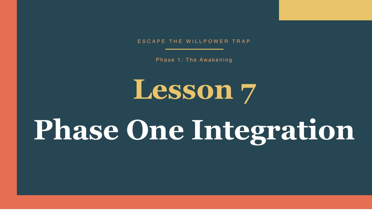 Escape The Willpower TrapLesson 7: Phase One IntegrationEscape The Willpower Trap - Phase 1: The AwakeningRick TaylarMar 26, 2026∙ PaidShareThis post is for paid subscribersSubscribeAlready a paid subscriber? Sign inNext